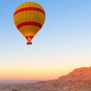 Zweef bij zonsopgang boven Luxor en laat je betoveren door de Vallei der Koningen, de Nijl en eeuwenoude tempels onder je. Deze 45 minuten durende heteluchtballonvlucht is pure magie, met uitzichten die je hart sneller laten kloppen. Dit is Egypte op zijn mooist!