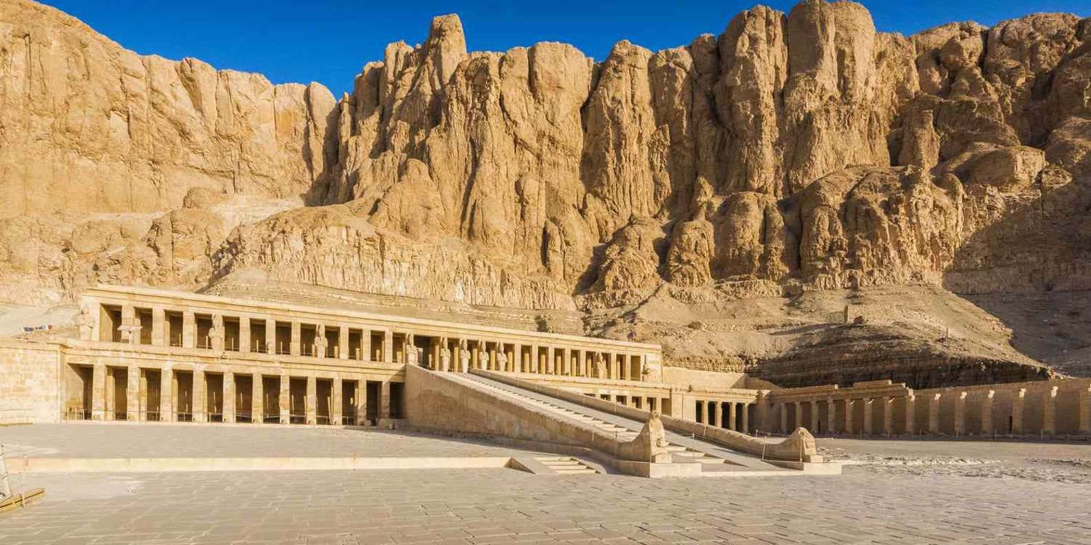 11:30 Hatsjepsoet Tempel: Bewonder deze unieke tempel in de kliffen.