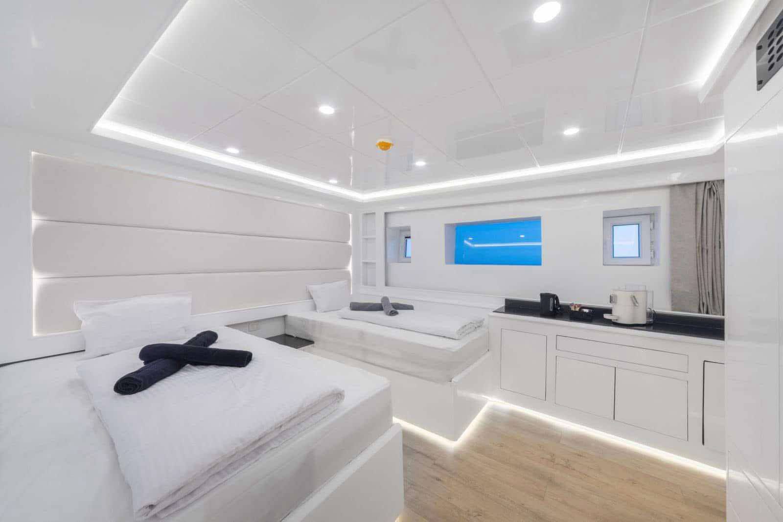 Gezellige cabins: Ontspan in 10 airconditioned dubbelcabins met privébadkamer en dagelijkse housekeeping.