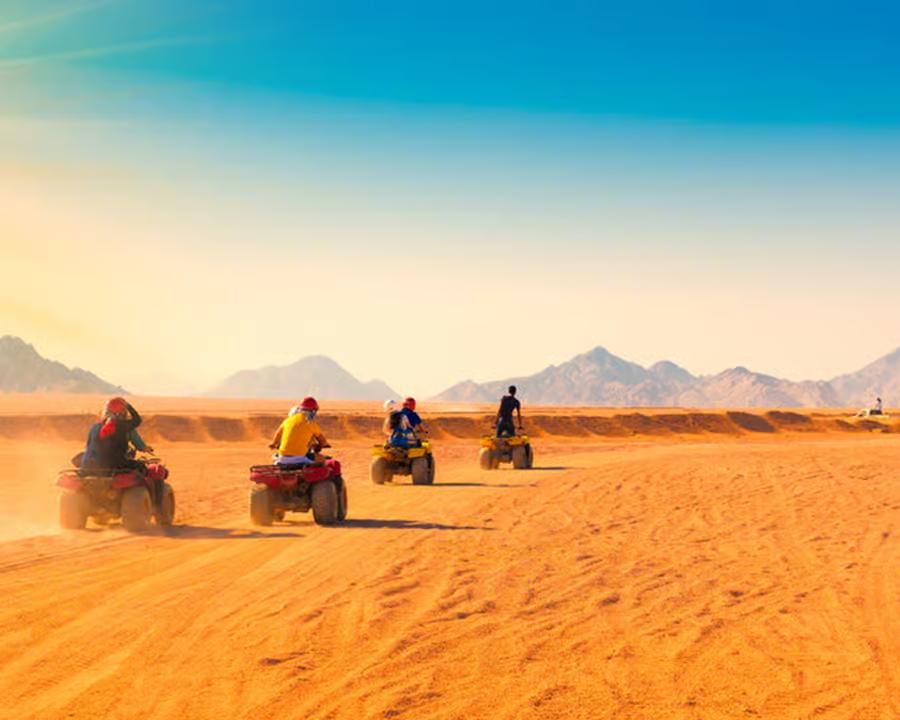 Snelheid en avontuur roepen in de Egyptische woestijn! Ontsnap aan de stad en race over zandvlaktes en duinen rond Hurghada met een spannende quad safari overdag.